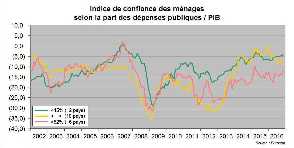 Ces indicateurs, qui mesurent le « moral » des ménages et des entrepreneurs français, peuvent être considérés comme des signes avant-coureurs de l'évolution de la situation économique. L'indicateur de climat des affaires amplifie les fluctuations de la confiance des ménages. Après s'être redressé après la crise de 2008, il s'est de nouveau rapidement dégradé depuis le printemps 2011, pour rejoindre celui de la confiance des ménages.
