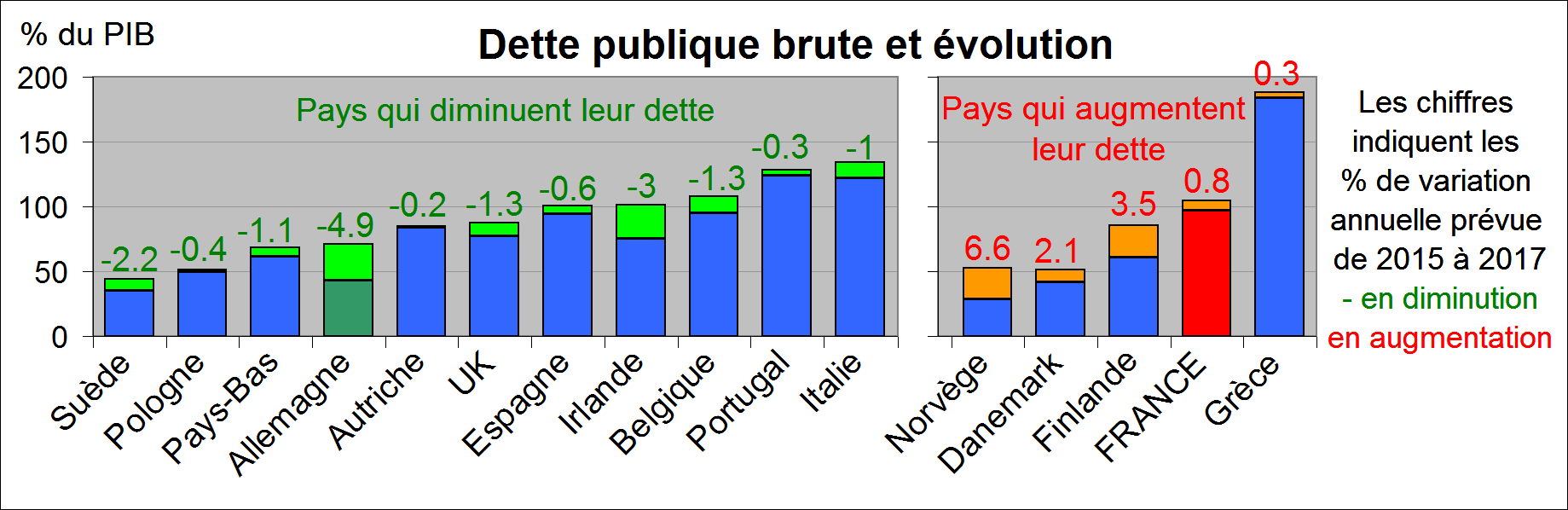 Depuis 5 ans, les "cigales" du sud paient leur insouciance passée d’une récession ou d’une stagnation et d’une hausse du chômage, quand la "fourmi" Allemagne récolte les fruits des efforts consentis de 2000 à 2005. La France, que son comportement rapproche des premières, échappe encore - mais pour combien de temps ? - aux sévères cures de rétablissement des finances publiques auxquelles ont été contraintes l’Italie et de l’Espagne, qui aggravent pour l’instant leur situation sur ces deux critères.